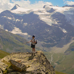 13. Li grimpis [ … ] la pinto (=le sommet).